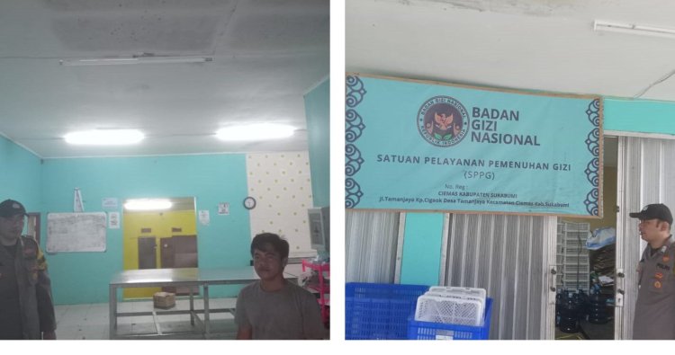 Ciemas – Kapolsek Ciemas AKP Deni Miharja, S.H., M.H., didampingi Bripka Zainal Mufti, melaksanakan monitoring Satuan Pengamanan Perusahaan/Gedung (SPPG) dalam rangka MBG harian, Selasa (2/12/2025) pukul 09.30 WIB di wilayah hukum Polsek Ciemas.