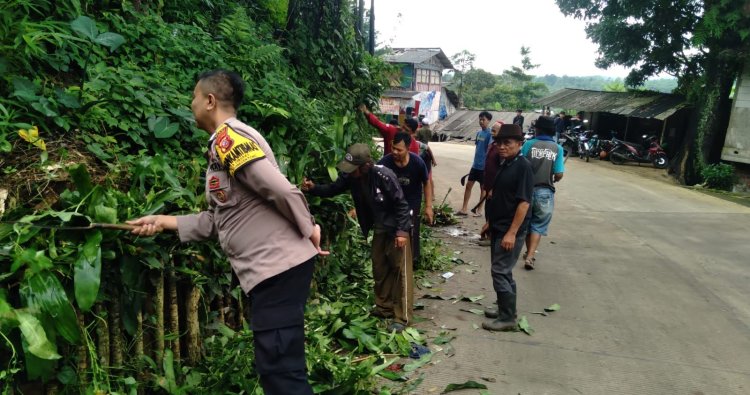 Bhabinkamtibmas Desa Cibodas Polsek Bojonggenteng bersama unsur Pemerintah Desa, Babinsa, para Ketua RT/RW, serta warga melaksanakan kegiatan Kerja Bakti “Kamsih” (Kamis Bersih-bersih) di Ruas Jalan Kp. Pakuwon RT 01/01 Desa Cibodas, Kecamatan Bojonggenteng, Kamis (1/1/2026) pagi.