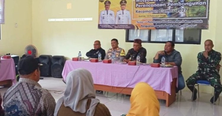 CIEMAS – Polsek Ciemas Polres Sukabumi menghadiri kegiatan Musyawarah Perencanaan Pembangunan (Musrenbang) Tahun 2027 tingkat Kecamatan Ciemas yang dilaksanakan di Aula Kantor Kecamatan Ciemas, Kabupaten Sukabumi, Jumat (13/2/2026).