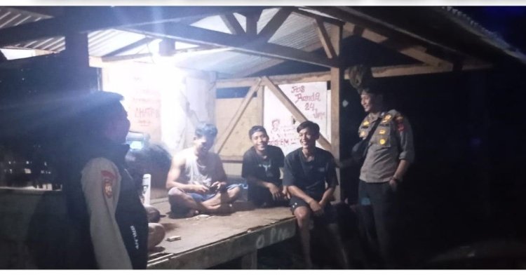 Personel Polsek Ciracap melaksanakan kegiatan sambang pengamanan swakarsa (Satkamling) dan patroli biru di Pos Satkamling Kampung Karajeun, Desa Ciracap, Kecamatan Ciracap, Kabupaten Sukabumi, pada Rabu malam (24/12/2025).