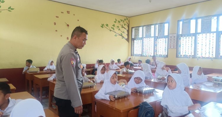 Bhabinkamtibmas Polsek Nyalindung, Aipda Sutrisno, S.Pd dan Aipda Hendro Saloka, S.E., melaksanakan monitoring kegiatan makan bergizi gratis di SDN Cireundeu, Desa Mekarsari, Kecamatan Nyalindung, Kabupaten Sukabumi.
