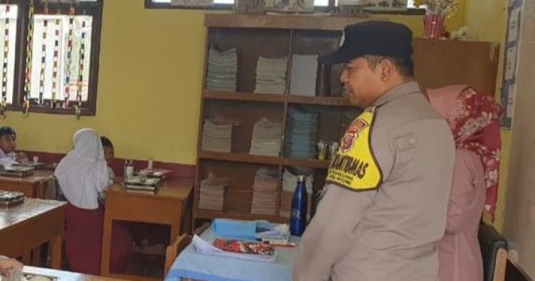 Sukabumi - Personel Polsek Nyalindung melaksanakan kegiatan Police Goes to School dalam rangka monitoring program Makan Bergizi (MBG) di SD Negeri Cireunde, Kp. Cireunde RT 03/03, Desa Mekarsari, Kecamatan Nyalindung.