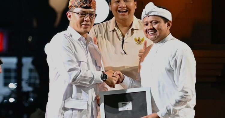 Sumedang, Sekjen DPP Partai Gerindra Sugiono resmi memberikan kartu tanda anggota kepada Bupati Sumedang Dony Ahmad Munir pada Jumat malam (13/02/2025).